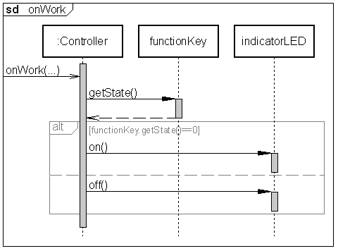 Controller::onWork():void// continuous event from the Mainloop // WENN Funktionstaste gedrückt DANN // AnzeigeLED an // SONST // AnzeigeLED aus